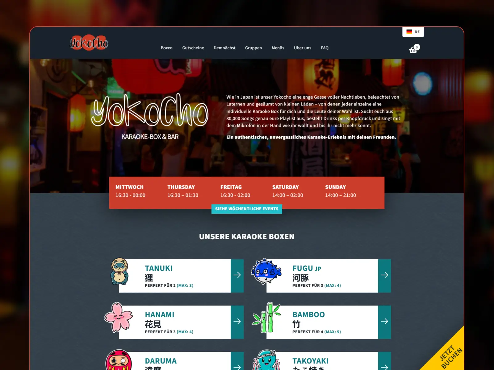 Die bestehende Website von Yokocho Karaoke war in die Jahre gekommen – sowohl technisch als auch visuell. Lange Ladezeiten, ein überladenes Backend und fehleranfällige Prozesse machten es dem Team schwer, Inhalte zu pflegen oder Buchungen zuverlässig abzuwickeln.